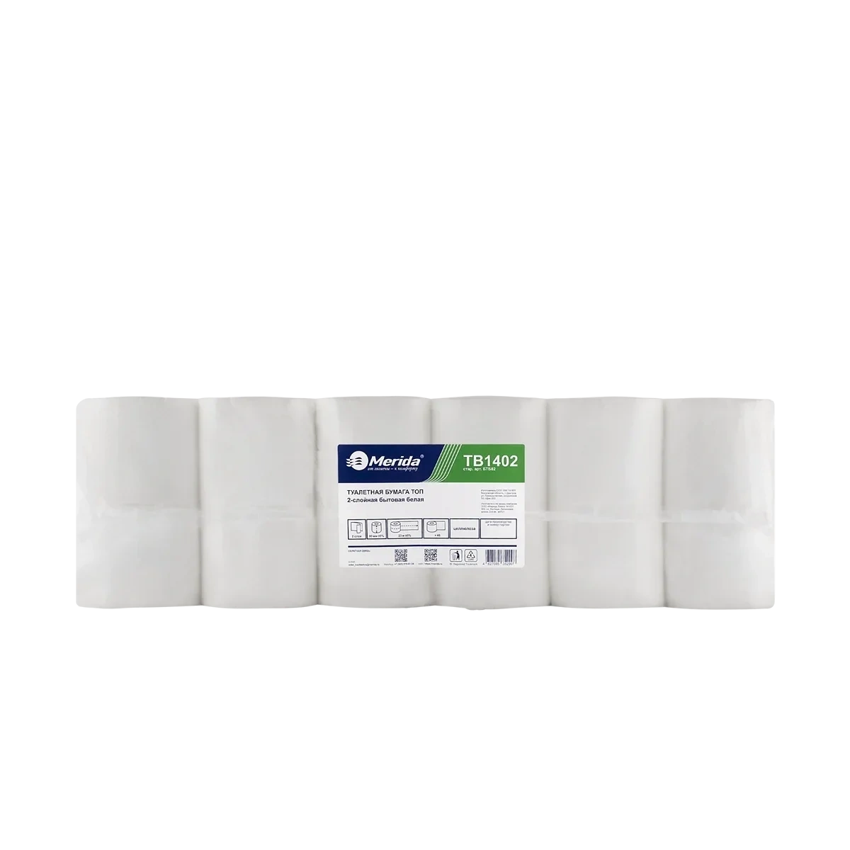 Туалетная бумага Merida TB1402 в рулоне, Топ, 2 слоя, 23м, белая, 48шт/уп