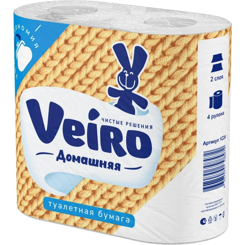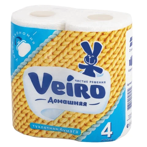 Туалетная бумага Veiro Домашняя без аромата, белая, 2 слоя, 4 рулона, 120 листов, 15м