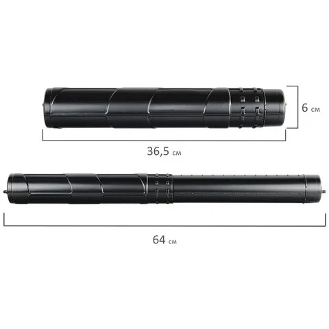 Тубус защитит чертежи и рисунки от внешних воздействий окружающей среды и случайных повреждений и заломов. Легкий, компактный, удобен в использовании для школьников младших и средних классов. Корпус тубуса раздвигается от 36,5 до 64 см. Диаметр: 6 см. Цвет: черный.
