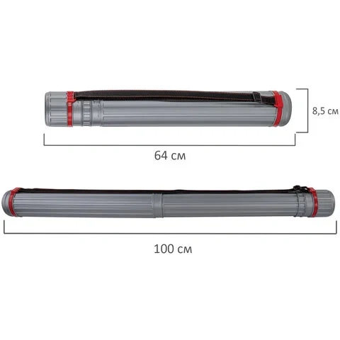 Тубус для чертежей телескопический Brauberg 64-100см, А0, диаметр 8.5см, серый, с ремнем