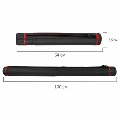 Тубус для чертежей телескопический Brauberg 64-100см, А0, диаметр 8.5см, черный, с ремнем