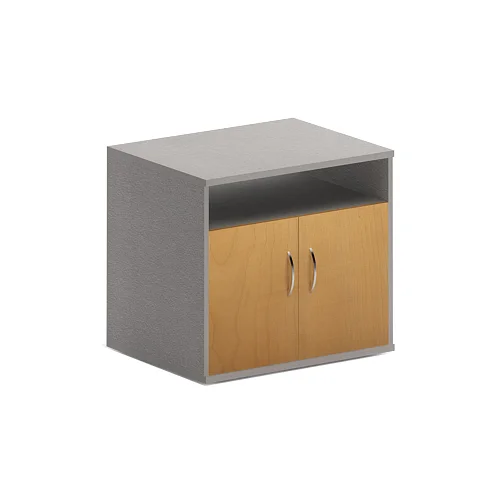 Широкая и глубокая тумба IMAGO для офисного или домашнего использования. Размеры - 770х680х600 мм, цвет - Клен/Металлик. Регулируемые опоры, надежная защита торцевых поверхностей - кромка ПВХ 2 мм. Верхняя секция - открытая, нижняя - закрыта дверцами.