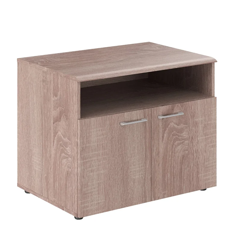 Универсальная тумба для оргтехники WAVE для офисного или домашнего использования. Размеры - 854х687х600 мм, цвет – Дуб Сонома. Тумба оснащена солидным верхним топом из МДФ 19 мм. Имеет две дверцы, на каждой из них есть надежные и прочные металлические ручки. Надежная защита торцевых поверхностей - кромка ПВХ. Регулируемые по высоте опоры обеспечат тумбе устойчивость на неровном полу.