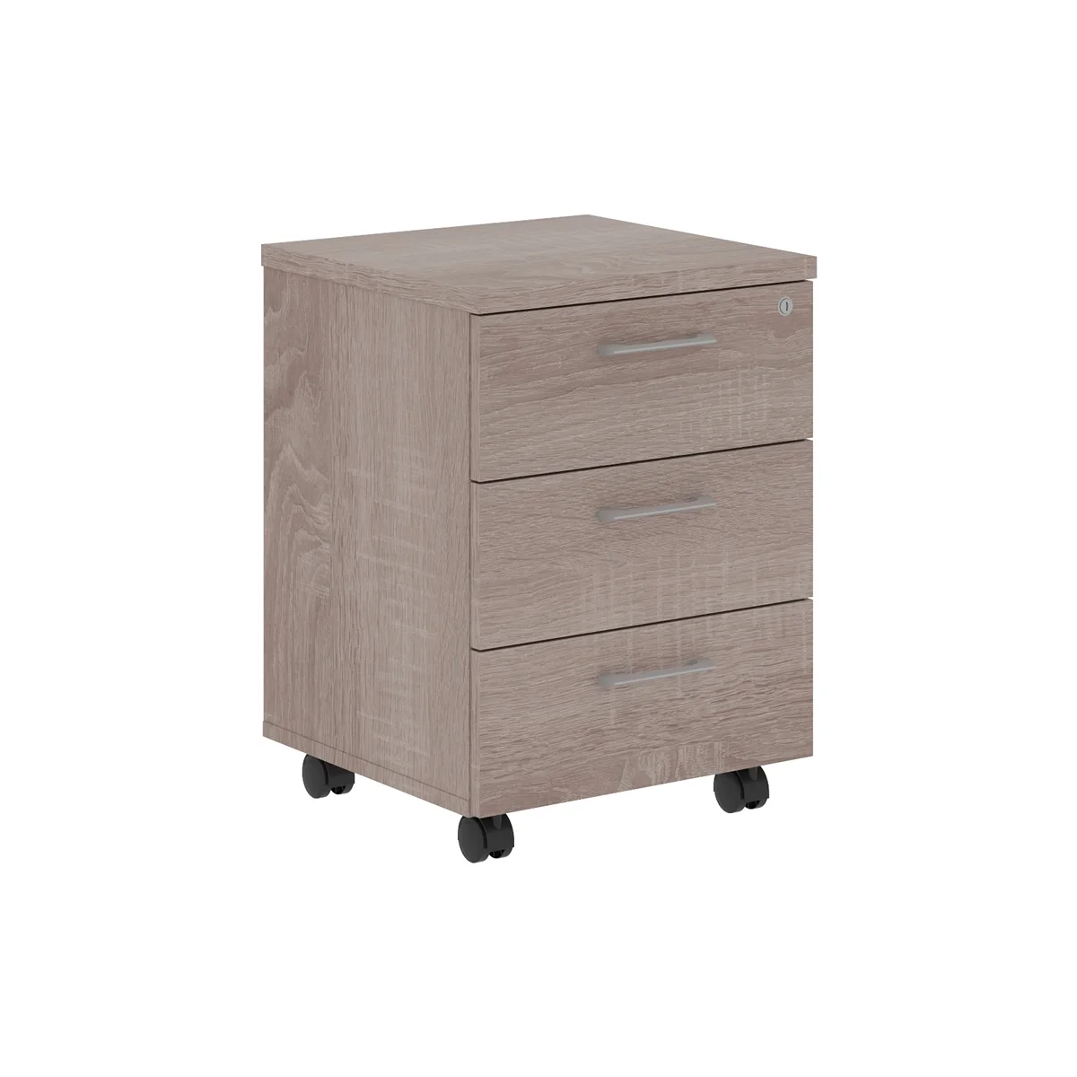 Универсальная мобильная тумба XTEN для офисного или домашнего использования. Размеры - 465х634х450 мм, цвет - Дуб Сонома. Тумба имеет солидный верхний топ 25 мм и надежную конструкцию с задней стенкой из ЛДСП 18мм. Удобные колесики с плавным ходом, надежная защита торцевых поверхностей - кромка ПВХ 2 мм. Количество ящиков - 3. Тумба оснащена центральным замком, позволяющим закрывать все ящики одним поворотом ключа. Конструкция тумбы оснащена прочными силовыми креплениями – эксцентриковыми стяжками.