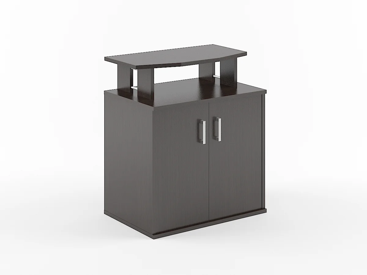 Универсальная тумба под фригобар BORN для офисного или домашнего использования. Размеры - 900х1045х600 мм, цвет - Венге Магия. Тумба имеет две просторные полочки, которые закрыты дверцами из ЛДСП под цвет конструкции. На дверцах установлены стильные металлические ручки. Сверху тумба оснащена солидной столешницей из ЛДСП 38 мм на прочных сводных опорах с трубчатыми металлическими вставками. Конструкция тумбы оснащена прочными силовыми креплениями – эксцентриковыми стяжками. Все торцы основных элементов тумбы надежно защищены кромкой ПВХ – 2 мм. Регулируемые по высоте опоры обеспечат тумбе устойчивость на неровном полу.