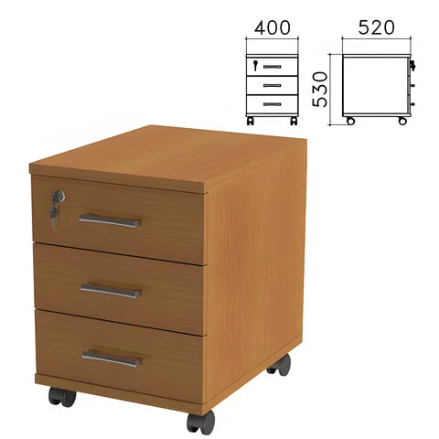Тумба подкатная предназначена для хранения канцелярских принадлежностей и документов. Оборудована 3 ящиками на роликовых направляющих. Наличие колесных опор обеспечивает легкий доступ и возможность удобного размещения тумбы под письменным столом.