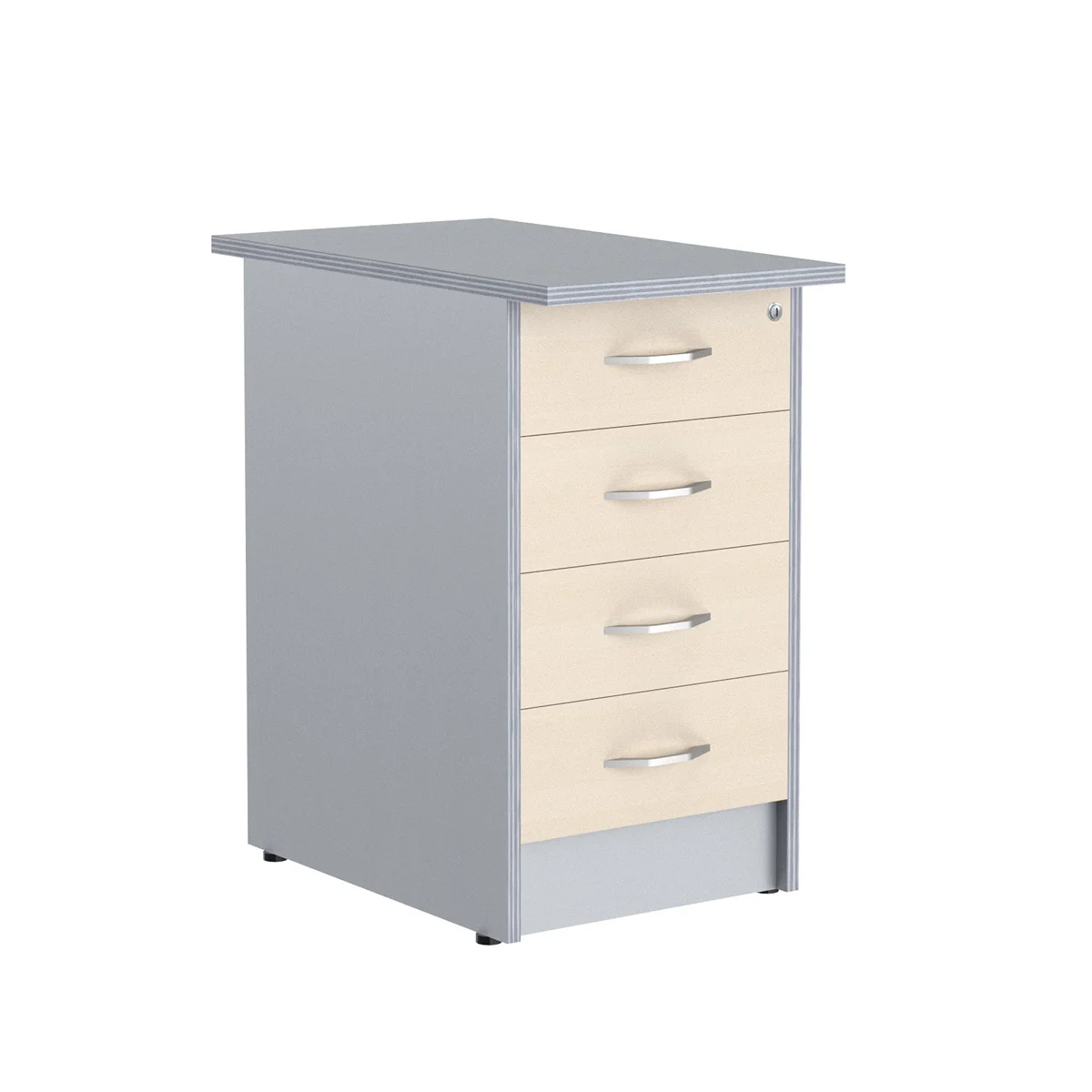 Универсальная тумба IMAGO для офисного или домашнего использования. Размеры - 412х775х720 мм, цвет - Клен/Металлик. 4 ящика, надежная защита торцевых поверхностей - кромка ПВХ 2 мм. Верхний ящик тумбы оснащен замком.