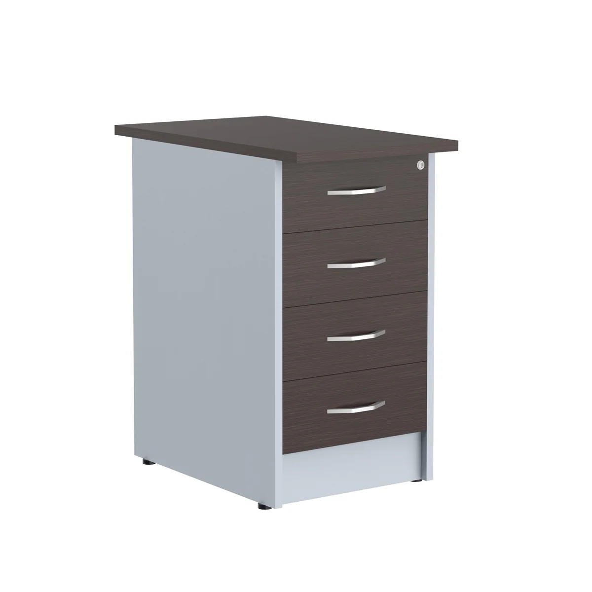Универсальная тумба IMAGO для офисного или домашнего использования. Размеры - 412х753х720 мм, цвет каркаса - Венге/Металлик, цвет топа - Венге. 4 ящика, надежная защита торцевых поверхностей - кромка ПВХ 2 мм. Верхний ящик тумбы оснащен замком.