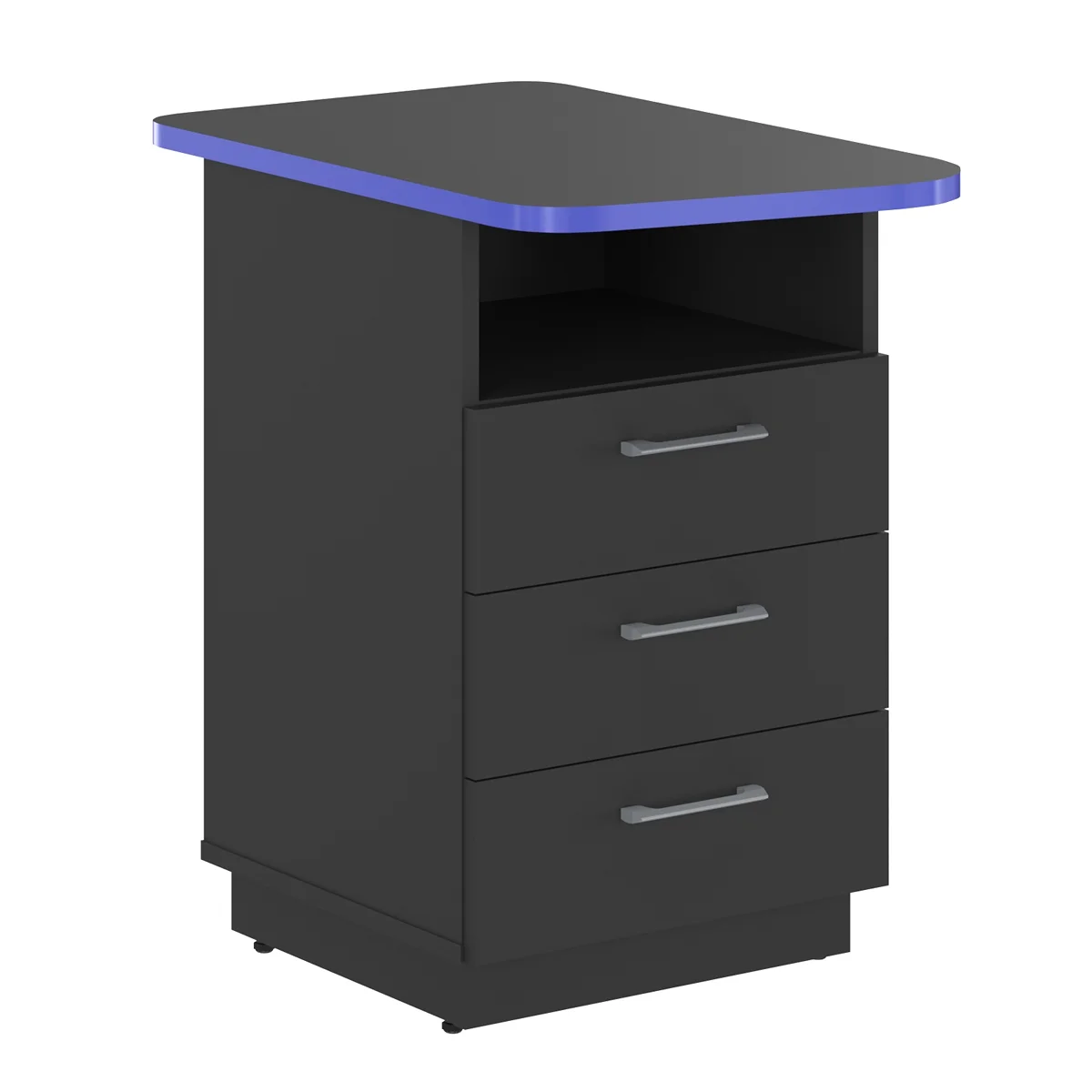 Универсальная приставная тумба для геймерского стола SSTG 1385, а также для столов STG 1385 и STG 1390 в среднем положении по высоте столешницы. Отличная система хранения - компактная и вместительная одновременно. Оптимальная эргономика: 3 ящика – чтобы все поместилось, и открытая ниша – чтобы самое нужное всегда было под рукой. Надежная защита торцевых поверхностей - кромка ПВХ 2 мм. Регулируемые опоры - для компенсации неровностей пола. Но главное, все же - это комфорт. SKLC-3D.2 - это про то, когда всё на своем месте.