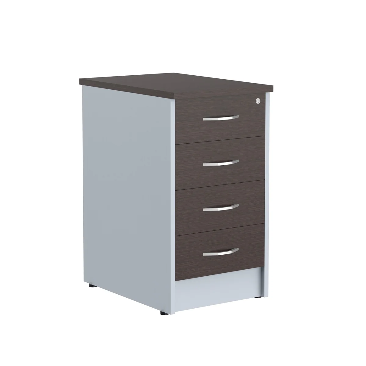 Универсальная тумба IMAGO для офисного или домашнего использования. Размеры - 412х775х600 мм, комбинированный цвет - Венге Магия/Металлик. 4 ящика, надежная защита торцевых поверхностей - кромка ПВХ 2 мм. Верхний ящик тумбы оснащен замком.