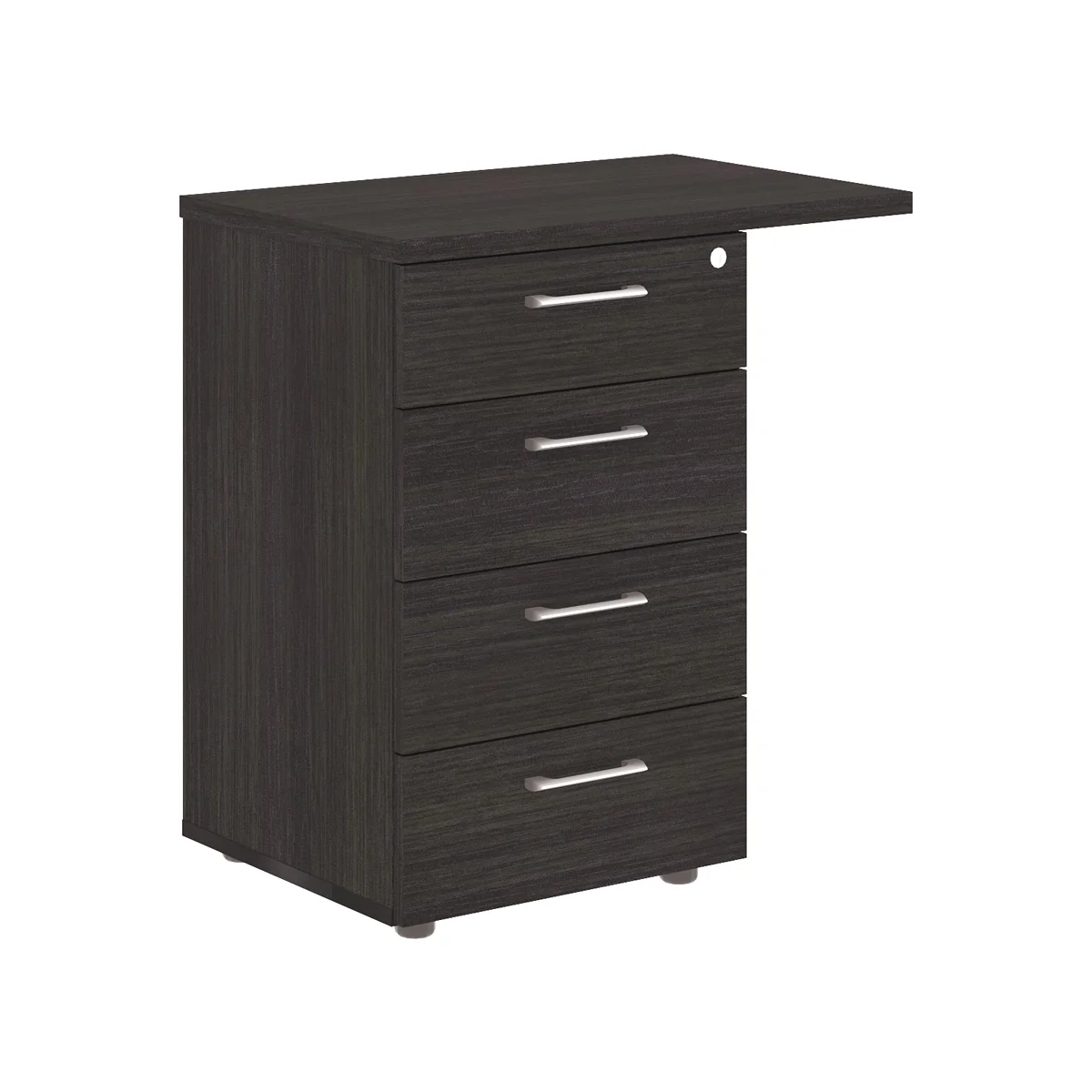 Универсальная приставная тумба XTEN для офисного или домашнего использования. Размеры - 700х750х450 мм, цвет - Дуб Юкон Модерн. Тумба оснащена солидным и увеличенным верхним топом - 25 мм, для более удобного присоединения к столу. Надежная защита торцевых поверхностей - кромка ПВХ 2 мм. Количество ящиков – 4, с долговечными и стильными металлическими ручками. Тумба оснащена центральным замком, позволяющим закрывать все ящики одним поворотом ключа. Конструкция тумбы оснащена прочными силовыми креплениями – эксцентриковыми стяжками. Регулируемые по высоте опоры обеспечат тумбе устойчивость на неровном полу.