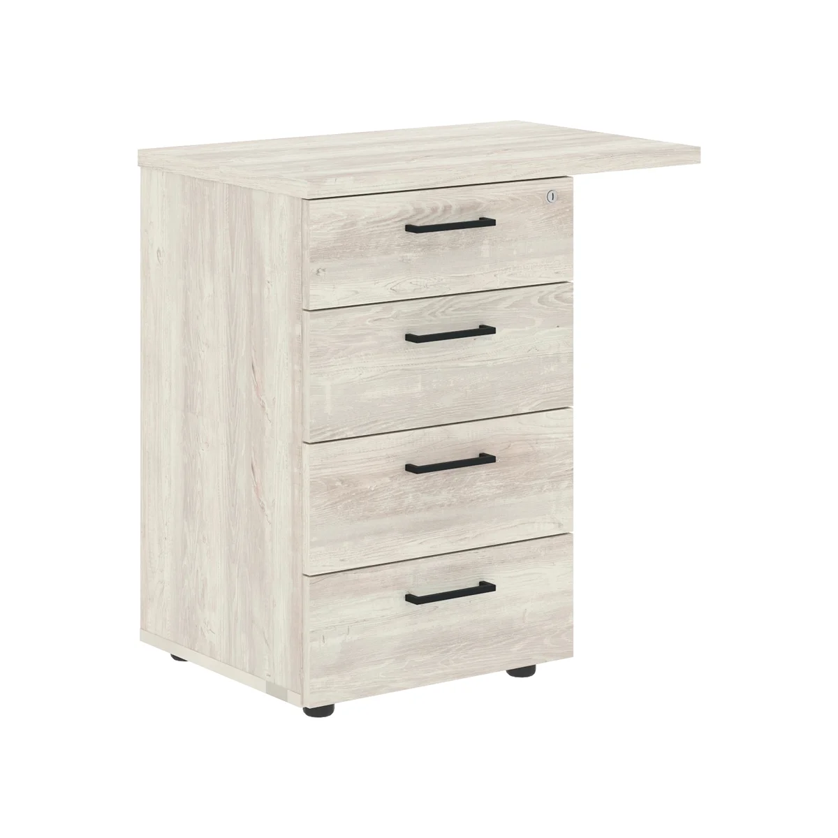 Универсальная приставная тумба XTEN для офисного или домашнего использования. Размеры - 700х750х450 мм, цвет - Сосна Эдмонт. Тумба оснащена солидным и увеличенным верхним топом - 25 мм, для более удобного присоединения к столу. Надежная защита торцевых поверхностей - кромка ПВХ 2 мм. Количество ящиков – 4, с долговечными и стильными металлическими ручками. Тумба оснащена центральным замком, позволяющим закрывать все ящики одним поворотом ключа. Конструкция тумбы оснащена прочными силовыми креплениями – эксцентриковыми стяжками. Регулируемые по высоте опоры обеспечат тумбе устойчивость на неровном полу.