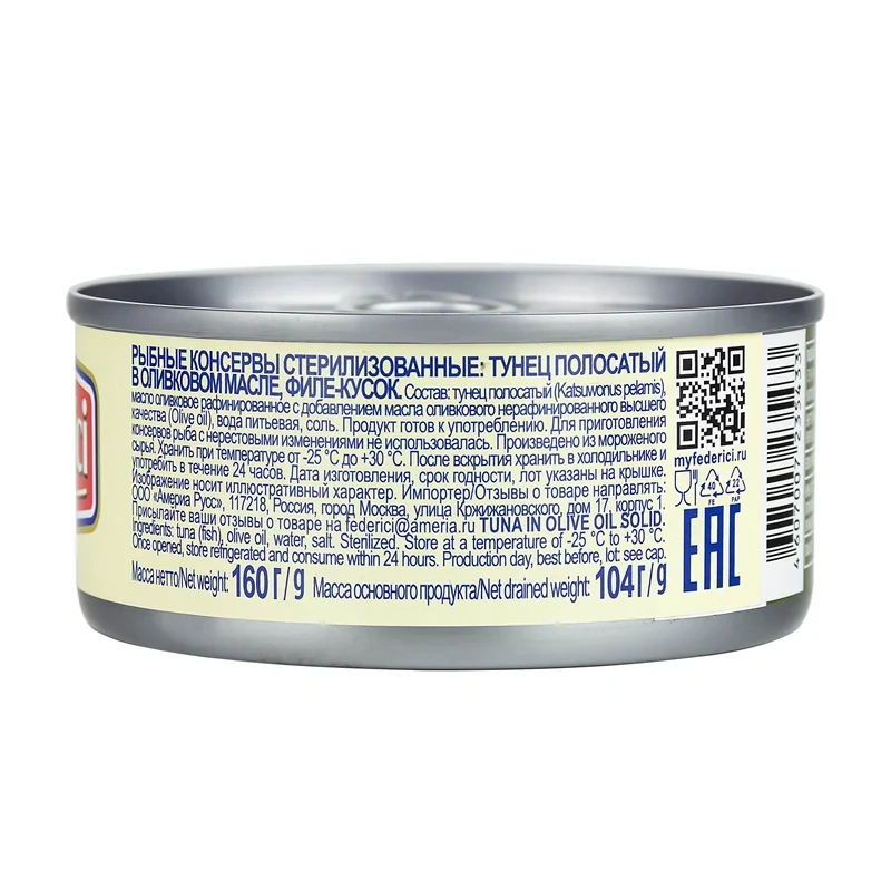 Тунец Federici в оливковом масле, 160г