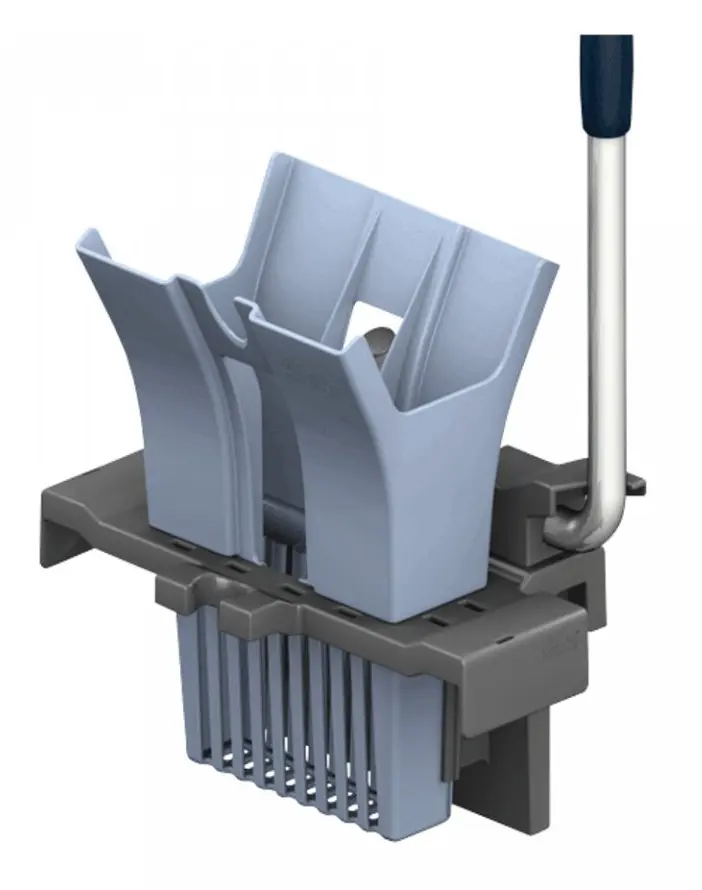 Встроенные фиксаторы швабры позволяют эргономично закрепить ручку с держателем в ведре.