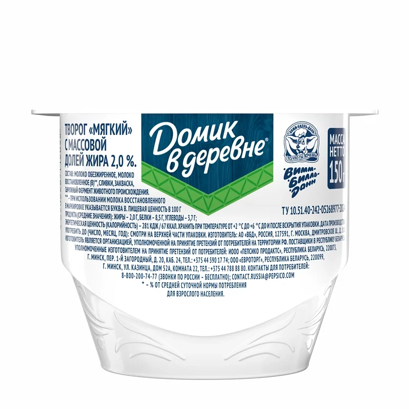Мягкий творог Домик в деревне без сахара с жирностью 2% и с большим содержанием белка подходит для правильного питания и активного образа жизни. Творог изготовлен из натуральных ингредиентов, имеет нежную текстуру, сливочный вкус и богат натуральным белком. Удобная упаковка создана специально для вкусного и полезного перекуса, который станет частью вашего здорового рациона. Творог может стать как самостоятельным блюдом, так и частью легкого перекуса.