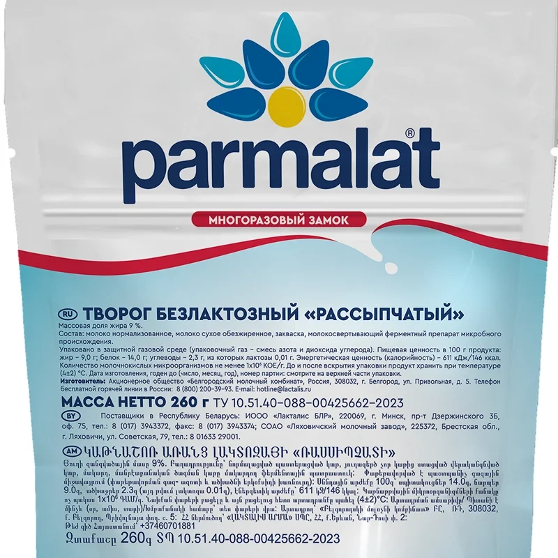 Творог рассыпчатый безлактозный Parmalat 9%, 260г