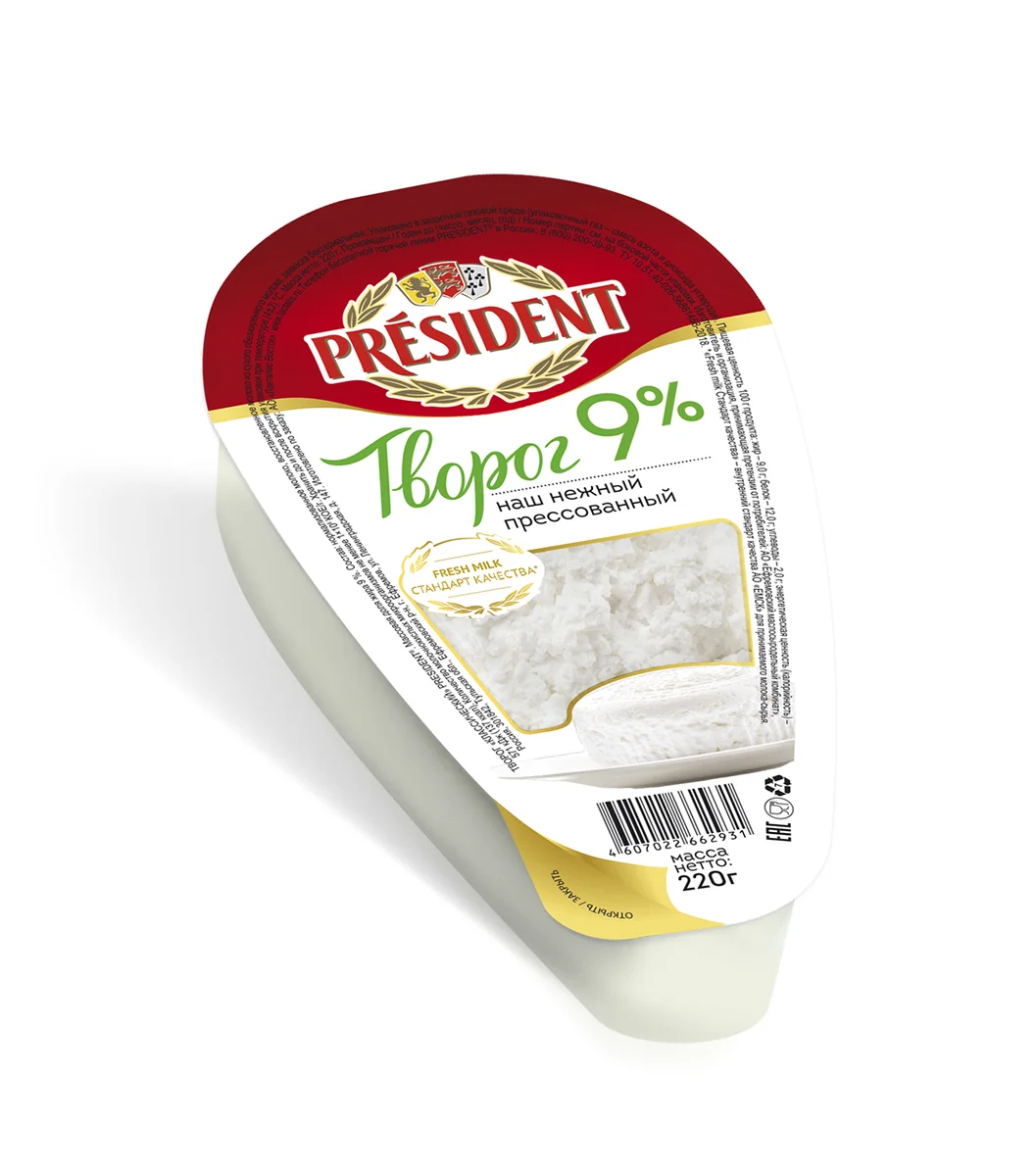 Творог рассыпчатый President 9%, БЗМЖ (без заменителя молочного жира), 200 г – полезный кисломолочный продукт, который отличается свежими, сочными, крупными зернами и нежным сливочным вкусом. Он содержит незаменимые аминокислоты, нормализует микрофлору кишечника, благодаря кальцию укрепляет скелет, костную ткань, зубы, понижает уровень холестерина в крови, нормализует работу желудочно-кишечного тракта. Удобная пластиковая упаковка позволяет не только наслаждаться творогом дома, но и взять его с собой в офис или на учебу. Продукт уже готов к употреблению. Он может стать самостоятельным блюдом вашего перекуса или завтрака в сочетании с сочными ягодами, спелыми фруктами или экзотическими сухофруктами. Кроме того, его можно использовать в качестве основного продукта при приготовлении творожных запеканок, сырников, ленивых вареников, сочников. Творог – это хорошая начинка для блинов, ватрушек. Он хорошо сочетается не только со сладкими продуктами, но и с белым мясом и овощами, поэтому станет прекрасным дополнением к различным салатам, тарталеткам с помидорами черри.