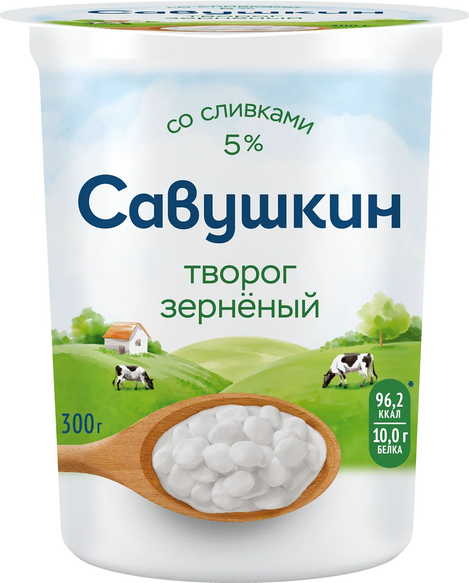Творог Савушкин продукт зерненый 101 зерно 5%, 300г