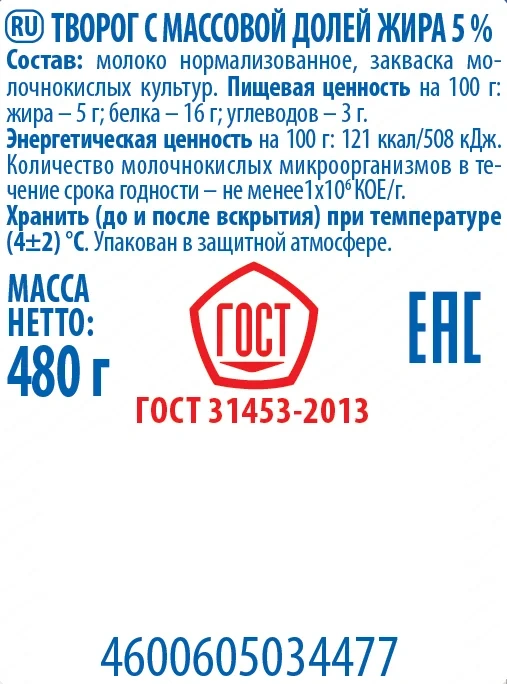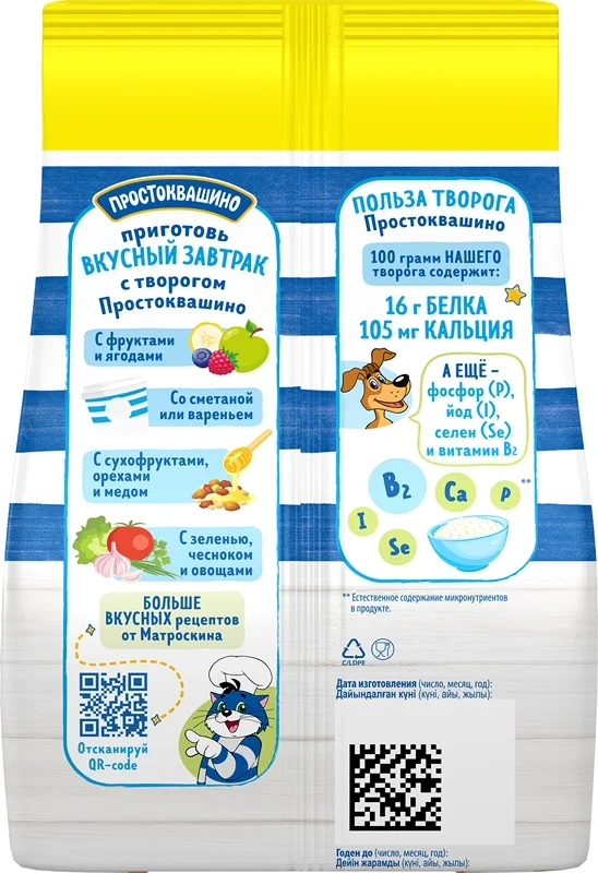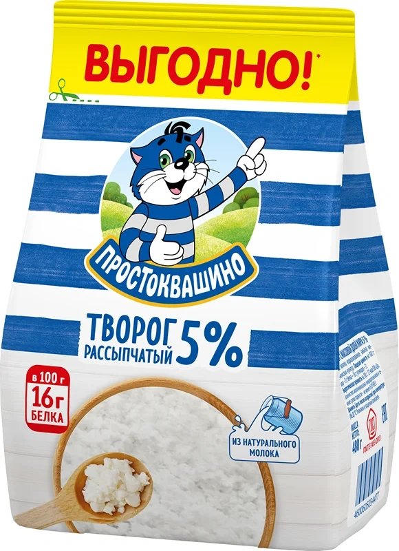 Рассыпчатый творог Простоквашино 5% 480г изготовлен только из 100% натурального молока и закваски, б...