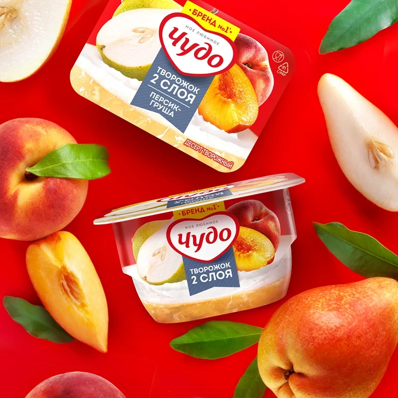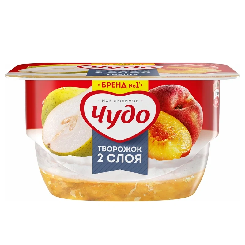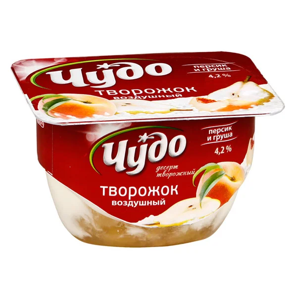Творожок Чудо Воздушный персик и груша, 4.2%, 100г