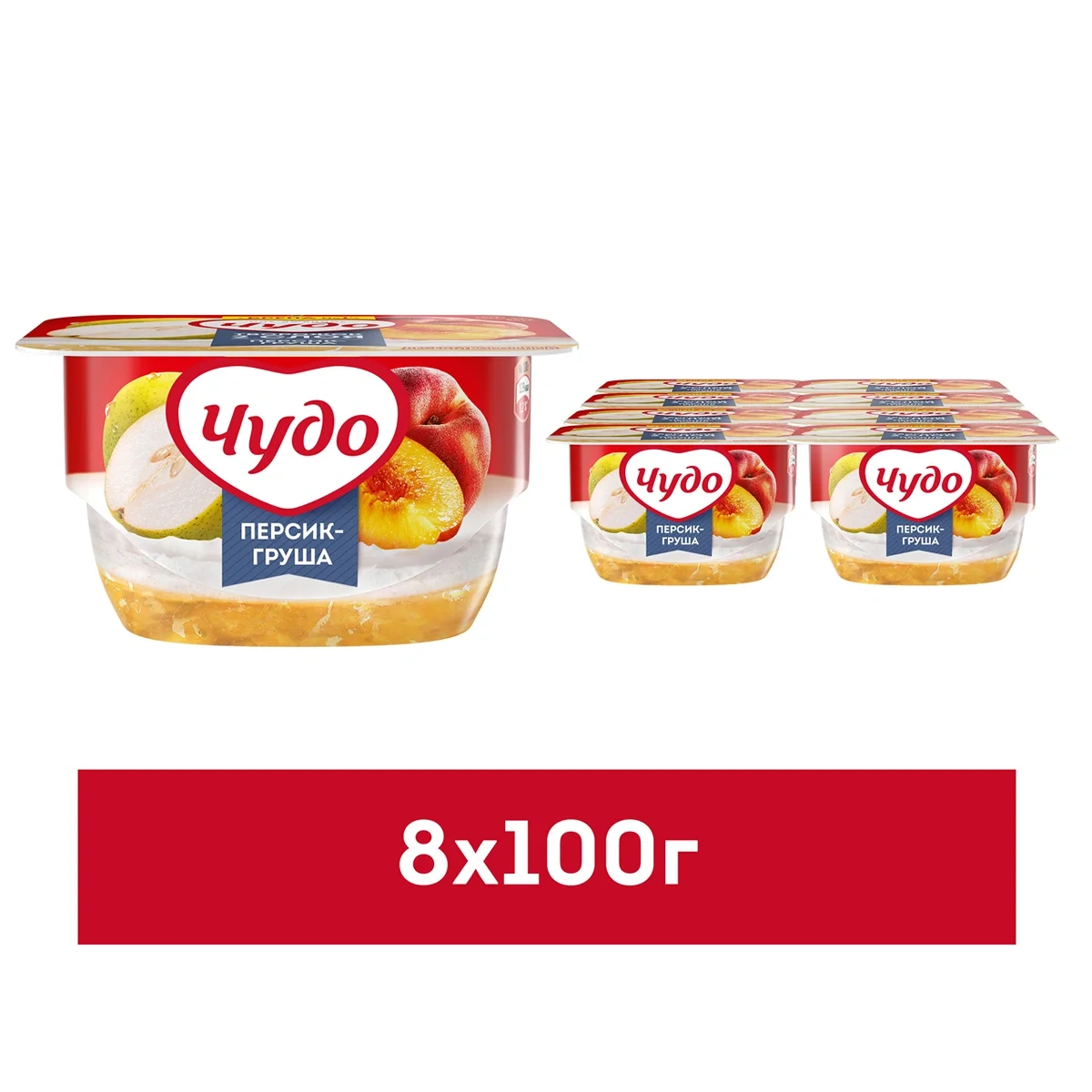 Творожок Чудо Воздушный персик и груша, 4.2%, 100г