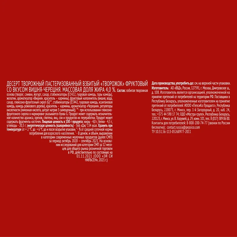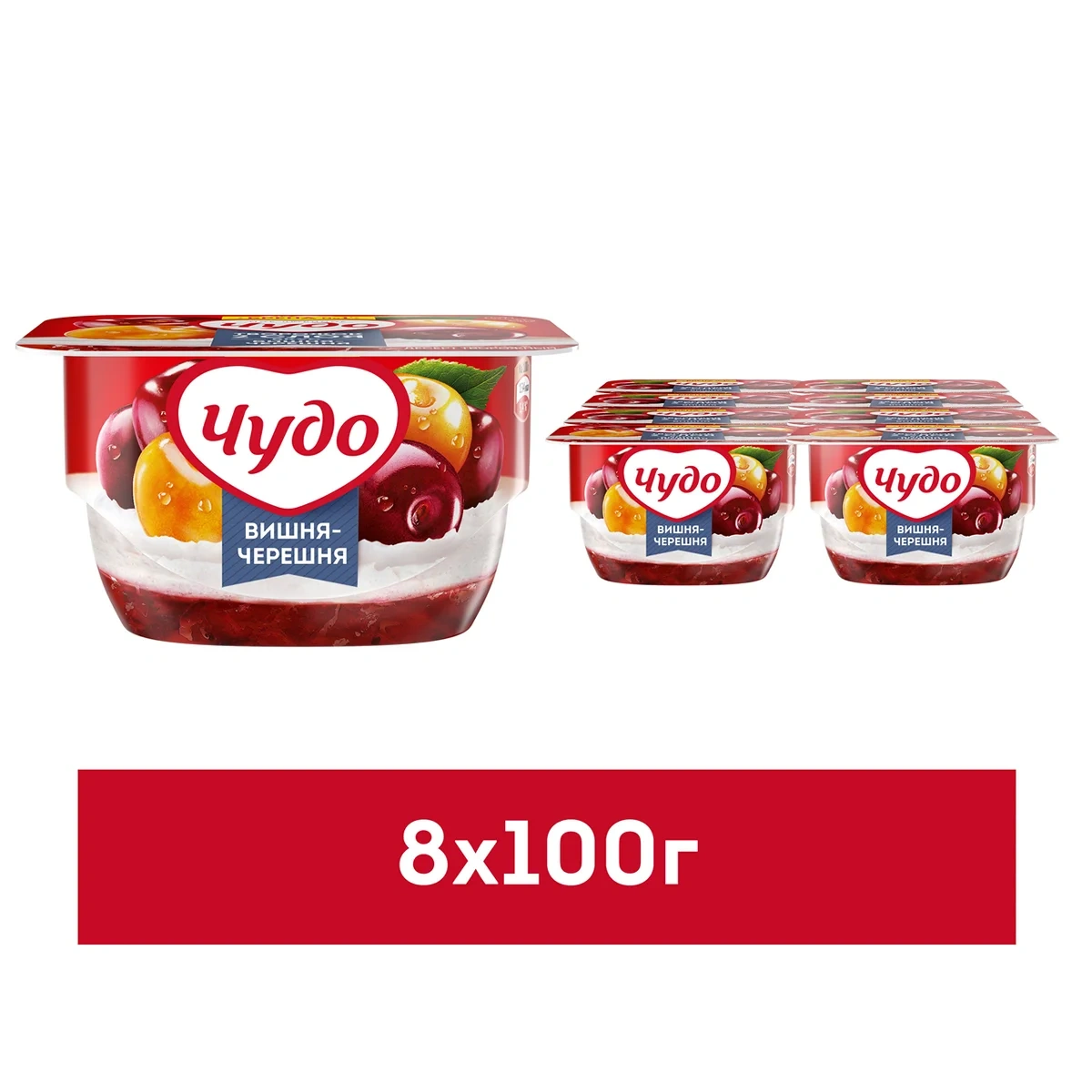 Двухслойный творожок Чудо- это уникальная нежная текстура воздушного творожка + джем с кусочками ягод. Яркий вкус вишни, черешни и воздушного творожка. Сочетание двух слоев, нижний - джем из вишни с нотками черешни, верхний - нежный творожок. Отлично подходит для перекуса или завтрак. Наслаждайтесь сладкими моментами.