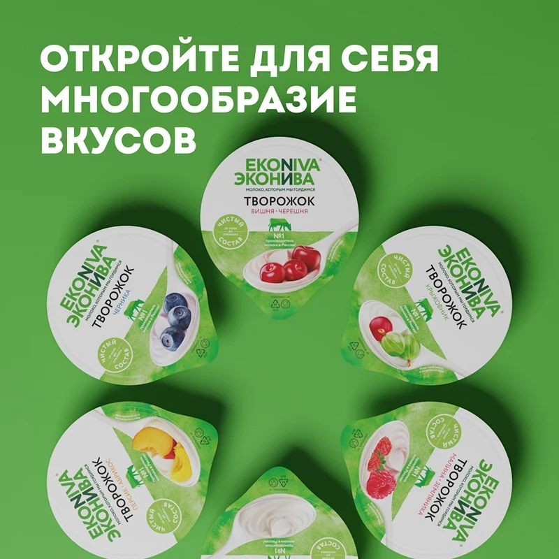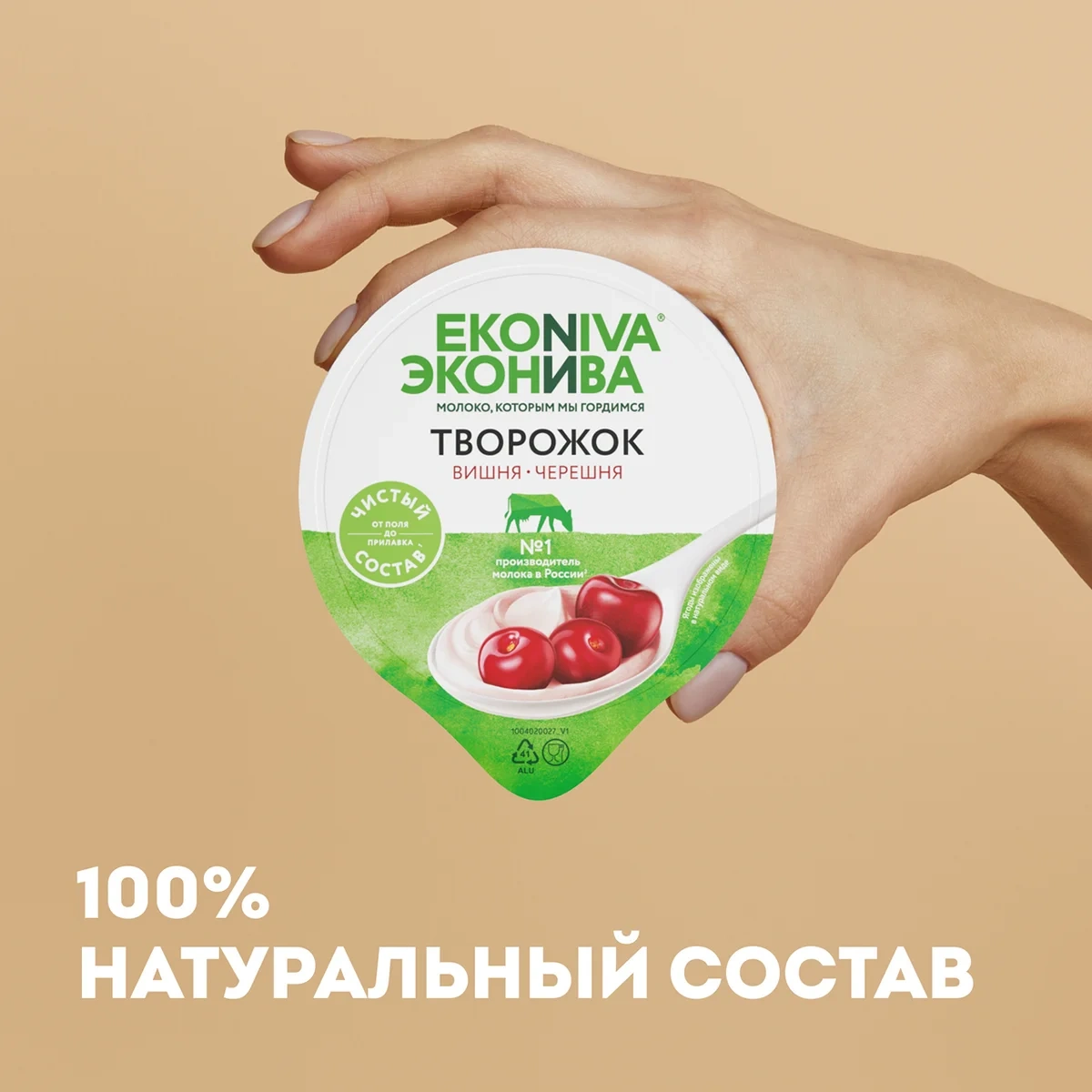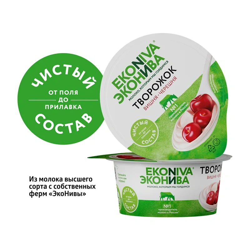 Продукт творожный Творожок с вишней и черешней 5% производится из молока высшего сорта при помощи специальной живой закваски с добавлением натурального наполнителя из ягод. Нежная кремообразная консистенция, сливочный вкус, высокое содержание легкоусвояемого белка — это лишь часть преимуществ данного продукта.Мягкий творог ЭкоНива станет отличным ингредиентом для создания творожных десертов с гранолой, злаками, орехами и топпингами.