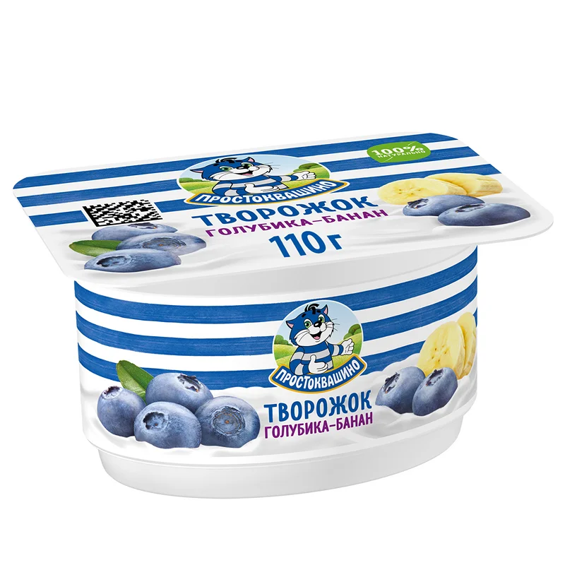 Творожок Простоквашино с голубикой и бананом 3.6%, 110г