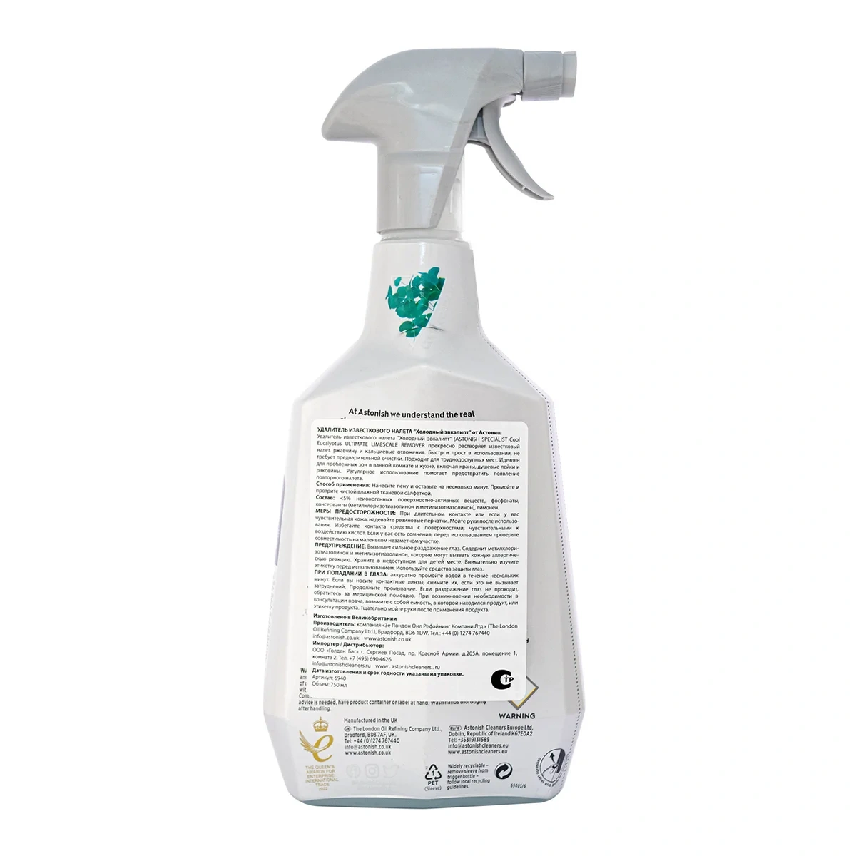 Интенсивное средство для удаления известкового налета. Растворяет известковый налет, ржавчину и кальциевые отложения без необходимости очистки. Просто распылите, оставьте, а затем протрите. Идеально подходит для проблемных зон в ванной или кухне, в том числе для смесителей, душевых кабин, ванн и раковин. При регулярном использование помогает предотвратить образование отложений. Прекрасно растворяет известковый налет, ржавчину и кальциевые отложения. Быстр и прост в использовании, не требует предварительной очистки. Подходит для труднодоступных мест. Идеален для проблемных зон в ванной комнате и кухне, включая краны, душевые лейки и раковины. Регулярное использование помогает предотвратить появление повторного налета. Подходит для веганов. Безопасно для септиков.