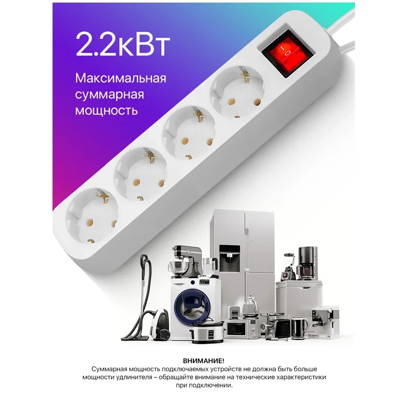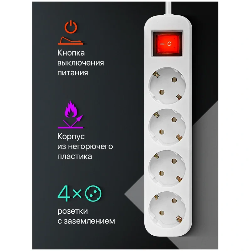 Удлинитель на 4 розетки с заземлением. Простой и надежный бытовой удлинитель, который предназначен для электроприборов и использования внутри помещений.Подходит для дома, офиса и коммерческих помещений.