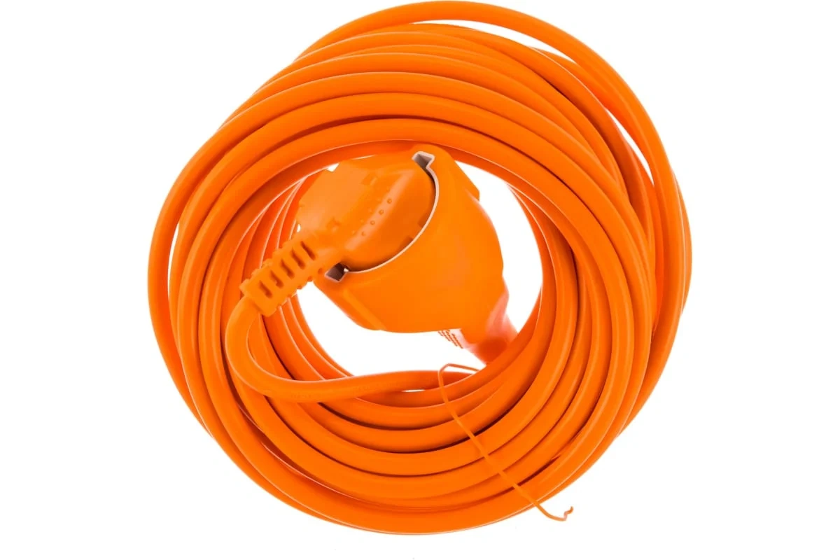 Является простым и практичным приспособлением для подключения электрических приборов. Длина провода - 30 метров, позволяет работать на удалении от основного источника сети. Кабель типа ПВС 2х0,75 оранжевого цвета оканчивается одной розеткой с защитой от детей.