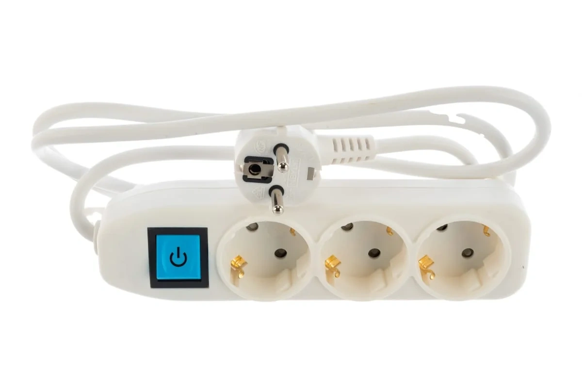 Удлинитель электрический Electraline 3 розетки, 1.5м, белый, 62010