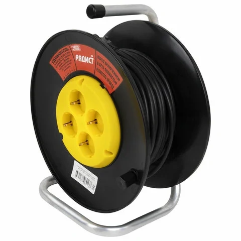 Удлинитель электрический на катушке Радист 4 розетки, 20м, черный, с заземлением, РБК16-270-005