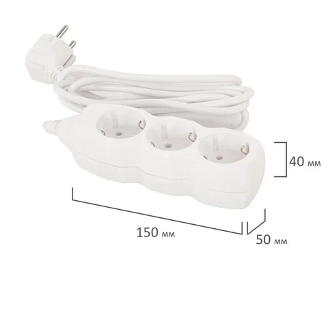 Сетевой удлинитель оснащен 3 евророзетками с заземлением. Максимальный ток нагрузки подключенных устройств может достигать 10 А. В сочетании эти параметры позволяют безопасно подключать к удлинителю до 3 электроприборов.