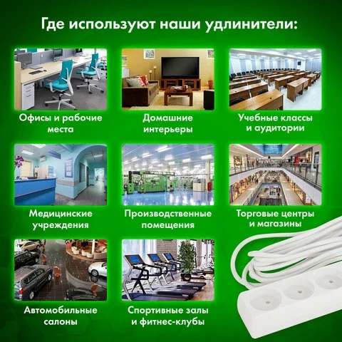 Рабочая частота модели составляет 50 Гц, а напряжение – 220 В. Эти показатели являются стандартными для такого типа устройств. Корпус удлинителя изготовлен из прочного негорючего ABS-пластика, что делает эксплуатацию безопасной.