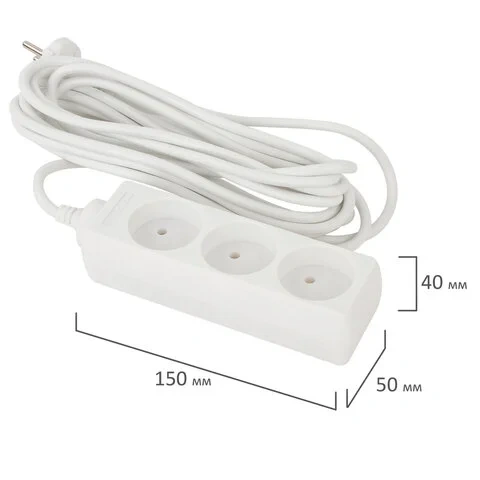 Сетевой удлинитель в пластиковом корпусе оснащен 3 евророзетками без заземления. Максимальный ток нагрузки подключенных устройств может достигать 6 А. В сочетании эти параметры позволяют безопасно подключать к удлинителю до 3 электроприборов. Длина кабеля – 5 метров, что позволит использовать удлинитель как внутри помещения, так и снаружи.