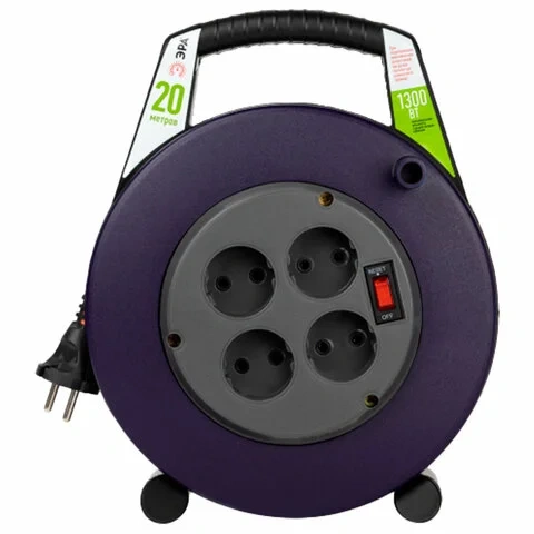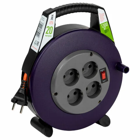 Удлинитель на катушке ЭРА BPx-4, 4 розетки без заземления, с выключателем, 20 м, 2x0,75 мм, 1300 Вт,
