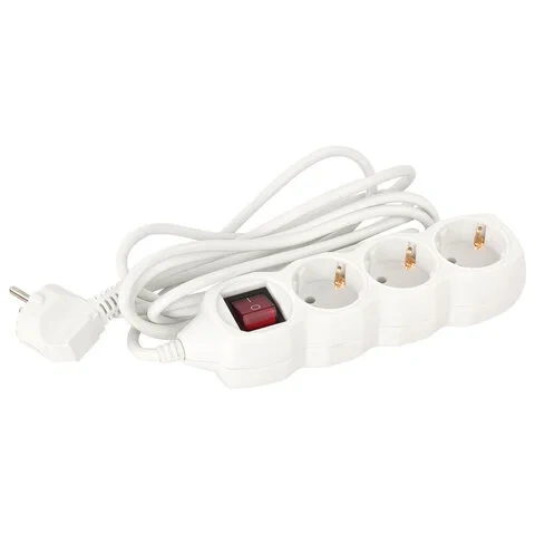 Сетевой удлинитель оснащен 3 евророзетками. Максимальный ток нагрузки подключенных устройств может д...