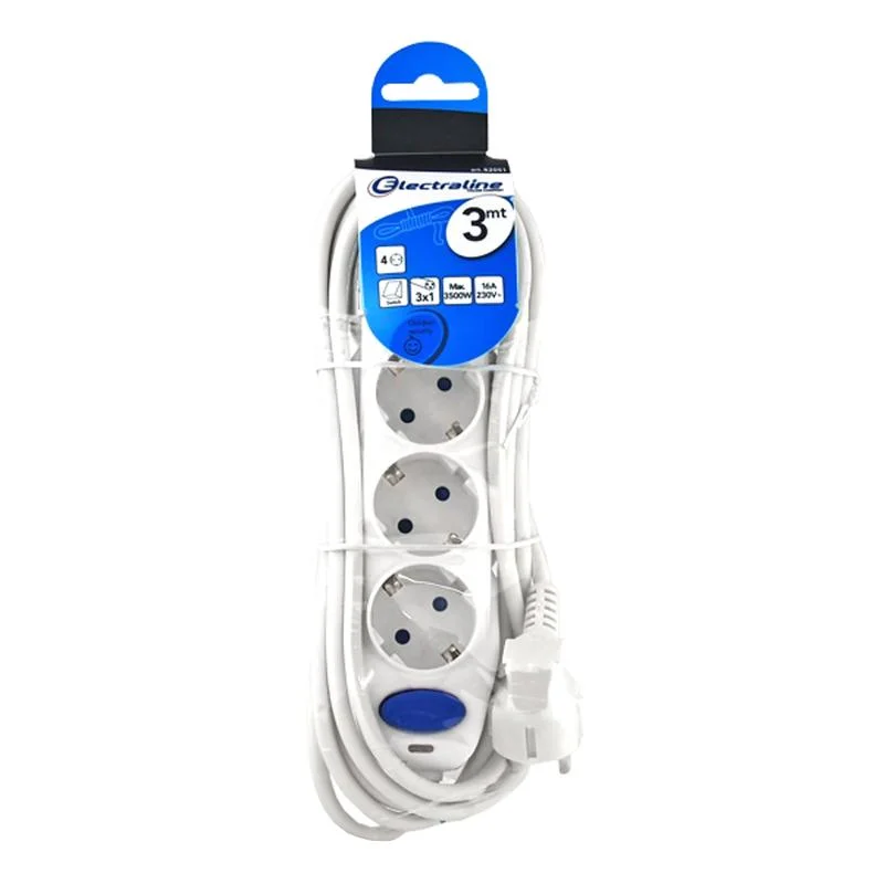 Удлинитель электрический Electraline 4 розетки, 3м, белый, 62051