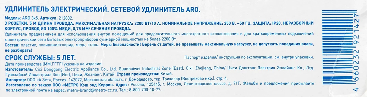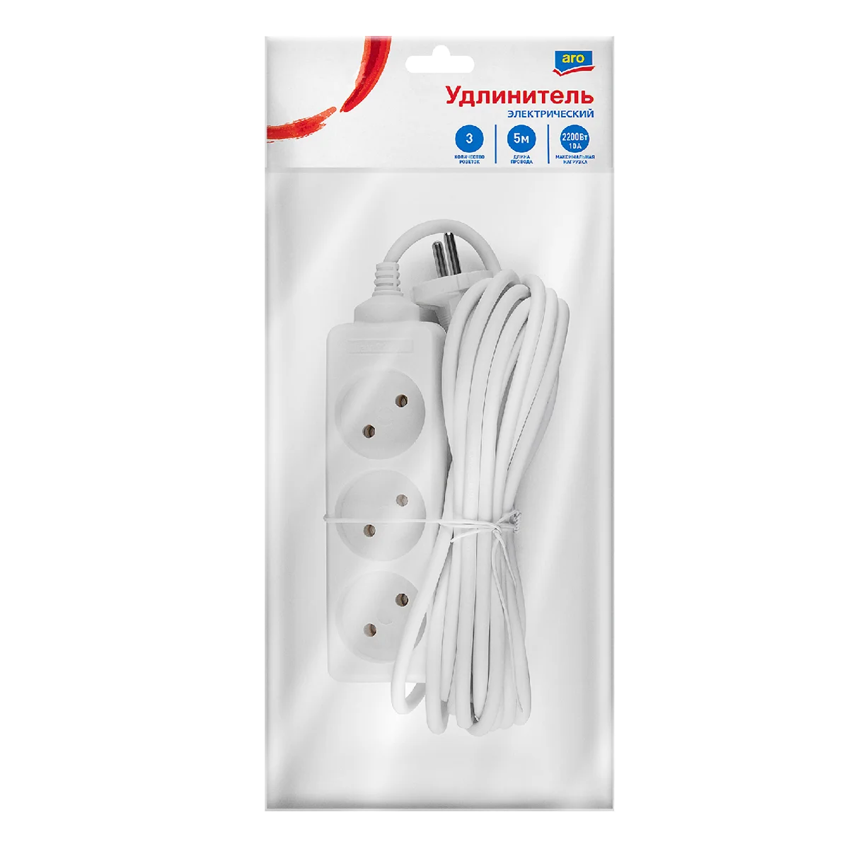 Удлинитель электрический Electraline 5 розеток, 5м, белый, 62169