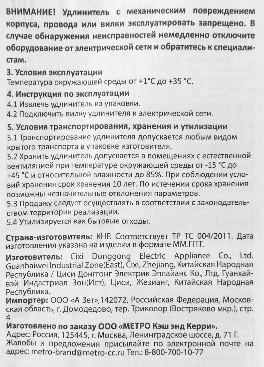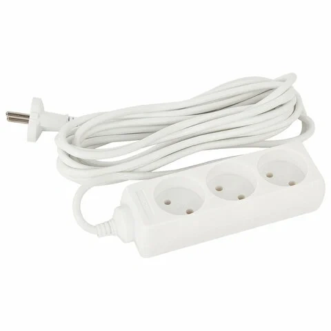 Удлинитель сетевой SONNEN U-135, 3 розетки, без заземления, 6 А, 5 м, 511430