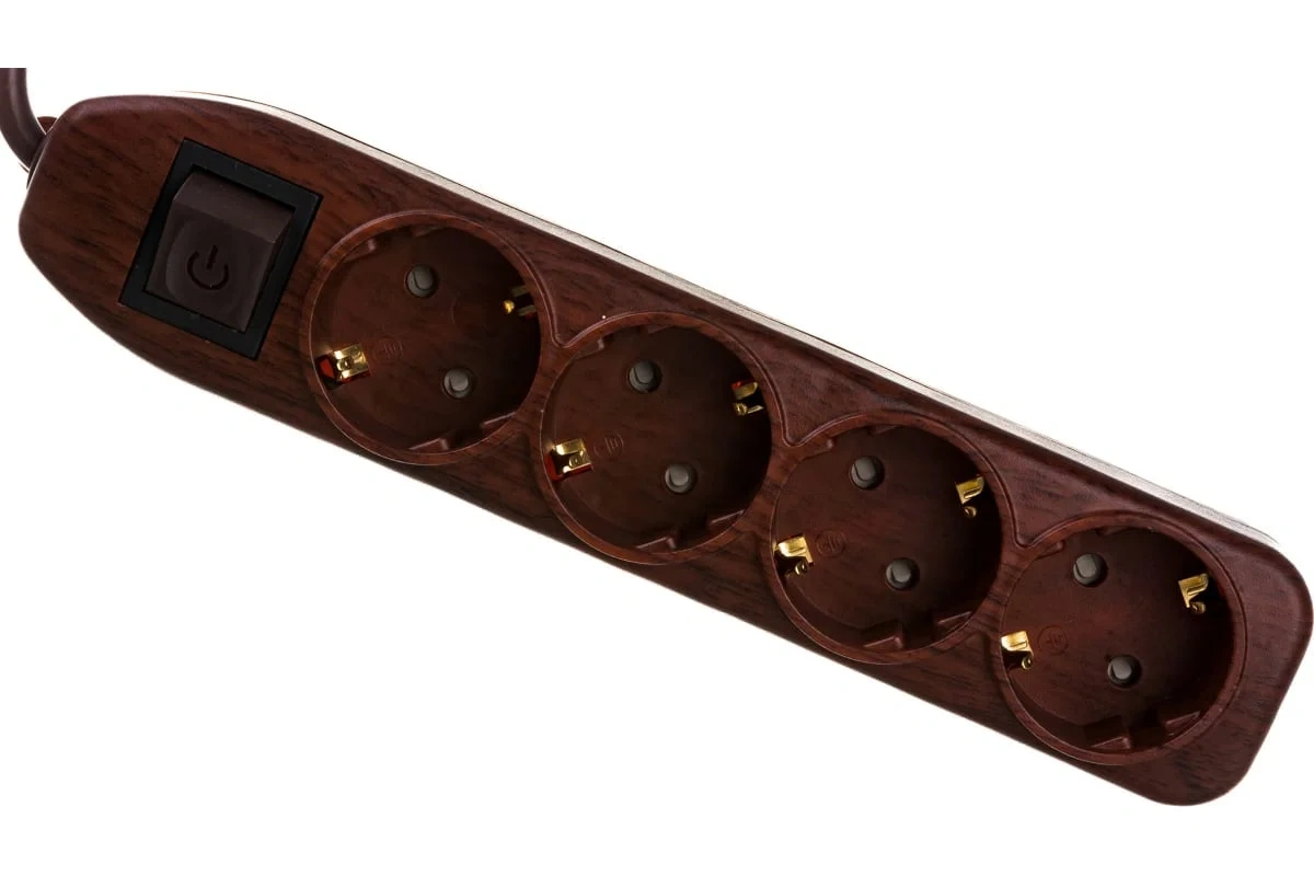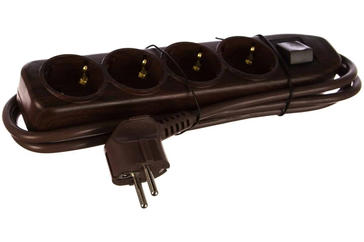 Удлинитель электрический Electraline 4 розетки, 1.5м, темное дерево, 62062