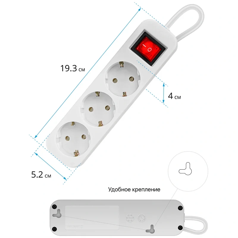 Удлинитель Defender S330, 3 розетки, с заземлением, выключатель, 3м, белый