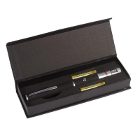 Лазерная указка с зеленым лучом обладает радиусом действия до 300 метров на открытом пространстве. Корпус выполнен из металла в виде ручки с карманным зажимом для удобства хранения и использования.