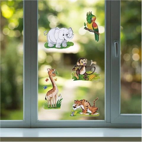 Изделие с изображением забавных зверят представляет собой наклейку на окно/стекло, изготовленную из поливинилхлорида (ПВХ). Наклейка размером 25,8х33,5 см декорирована разноцветным глиттером. Украшение предназначено для декорирования окон, зеркал, стекол и других ламинированных глянцевых поверхностей. Не оставляет клеевых следов и предназначено для многократного использования. Крепится к поверхности посредством статического эффекта. Украшение на белой картонной подложке упаковано в прозрачный полипропиленовый пакет на картонном подвесе.
