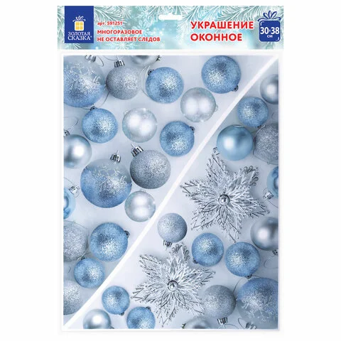 Изделие с зимним тематическим изображением представляет собой наклейку на окно/стекло, изготовленную из поливинилхлорида (ПВХ). Наклейка размером 30x38 см декорирована разноцветным глиттером. Украшение предназначено для декорирования окон, зеркал, стекол и других ламинированных глянцевых поверхностей. Не оставляет клеевых следов и предназначено для многократного использования. Крепится к поверхности посредством статического эффекта. Украшение на белой картонной подложке упаковано в прозрачный полипропиленовый пакет на картонном подвесе.