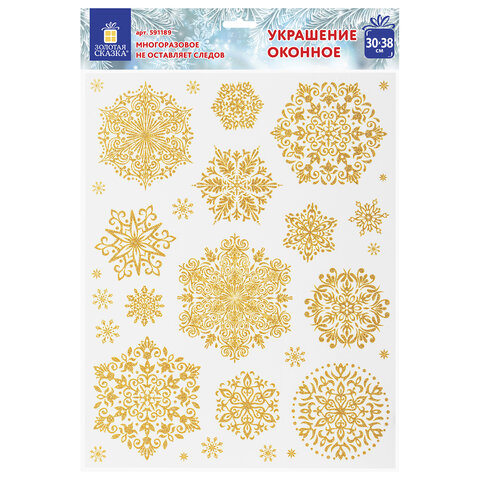 Украшение для окон и стекла ЗОЛОТАЯ СКАЗКА 'Золотистые снежинки 3', 30х38 см, ПВХ, 591189