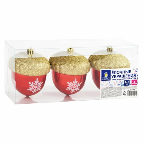 Набор елочных игрушек Magic Time Шишки золтой-красный, 3шт/уп