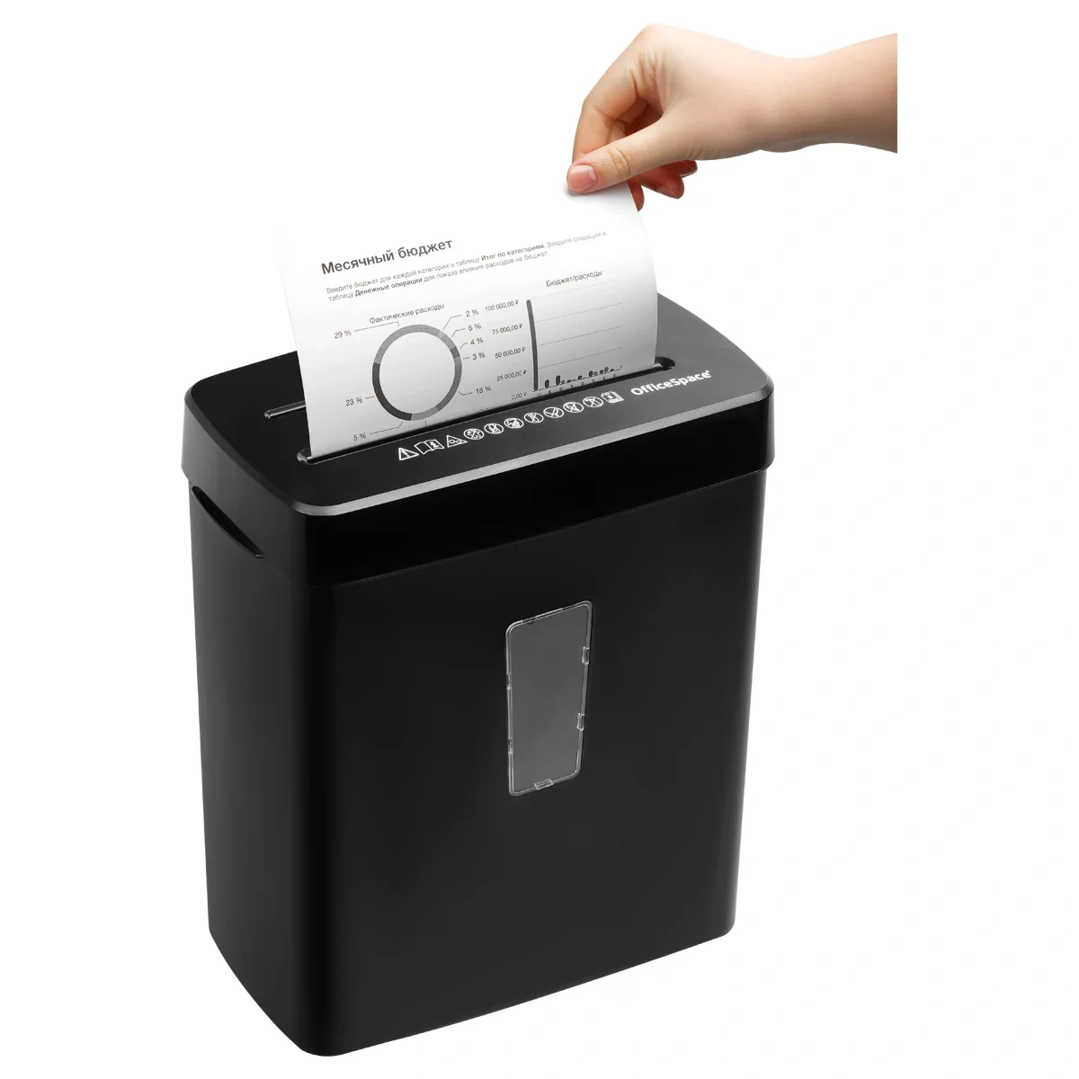Уничтожитель документов OfficeSpace DS813 – модель компактного размера для использования дома или в офисе. Предназначен для уничтожения документов, CD-дисков и пластиковых карт. Отдельное отверстие с корзиной для измельчения CD помогут разделить измельченные отходы. Интуитивно понятная панель управления упрощает использование уничтожителя. Для отслеживания наполняемости корзины в ней предусмотрено смотровое окно.