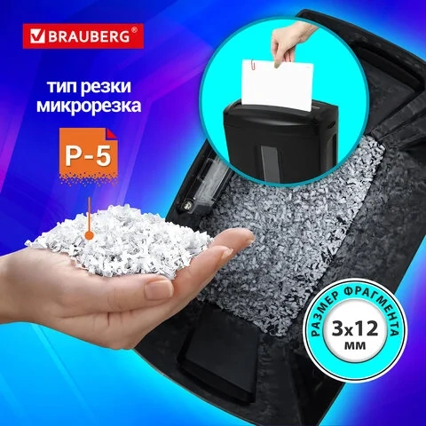 Уничтожитель (шредер) BRAUBERG 615M, 5 уровень секретности, фрагменты 3х12 мм, 6 листов, 15 л, 53215